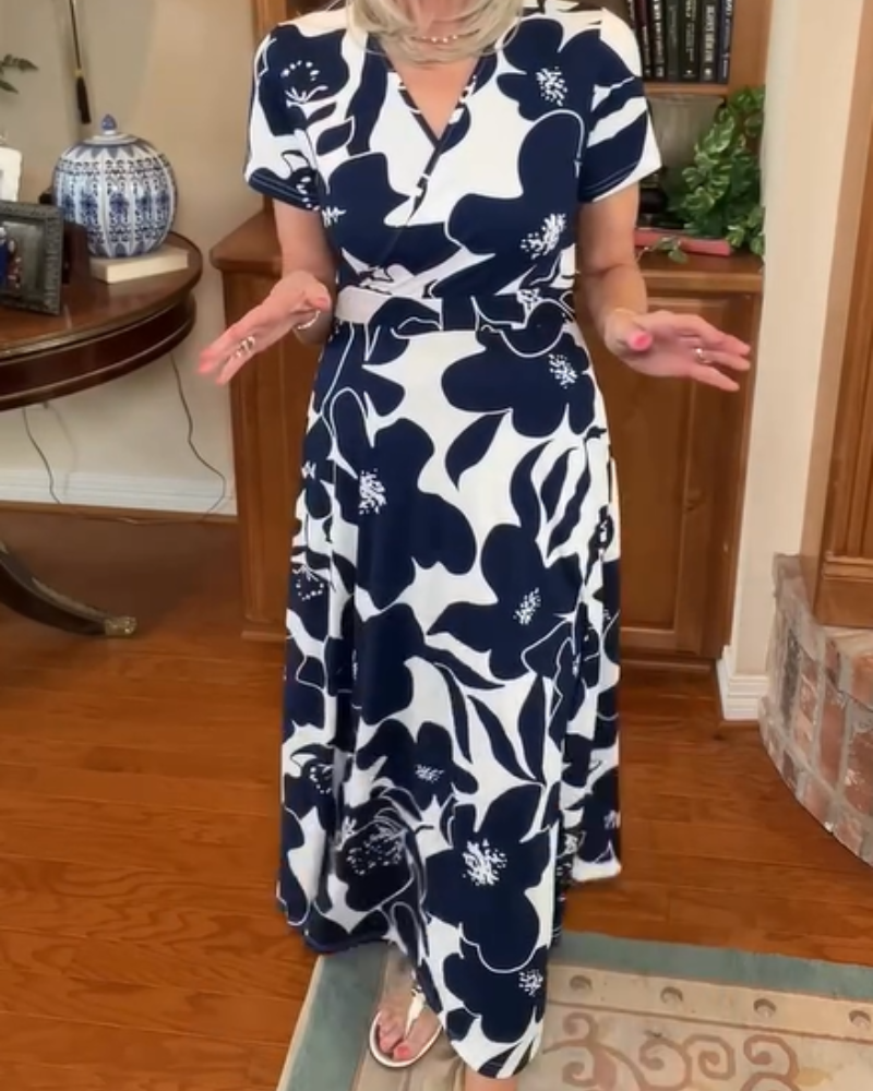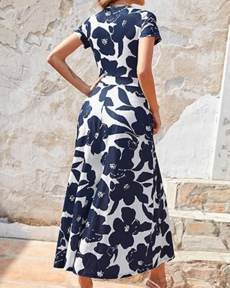 Channel relaxed elegance with the maxi dress, featuring a beautiful all-over print in a rich navy blue tone.