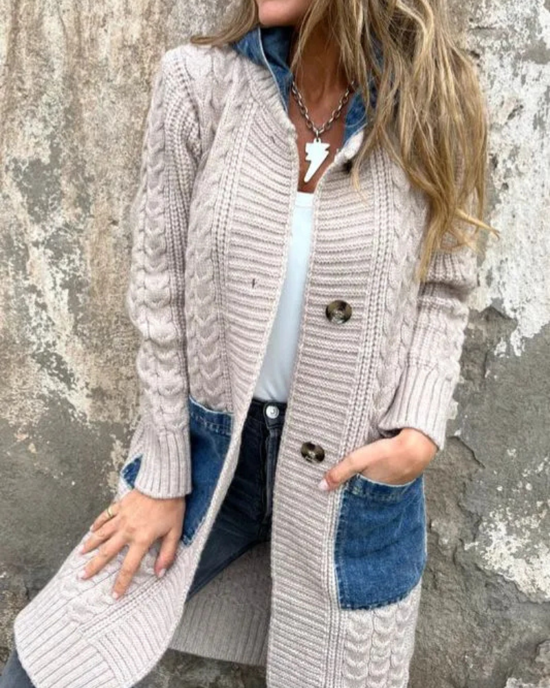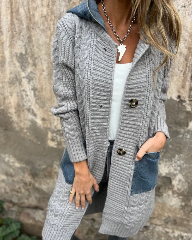 Its elongated cut, useful denim-trimmed pouches, and front button fastening establish it as the ideal outer garment for daily use, providing both usefulness and character.