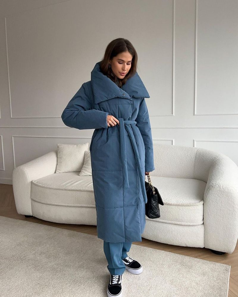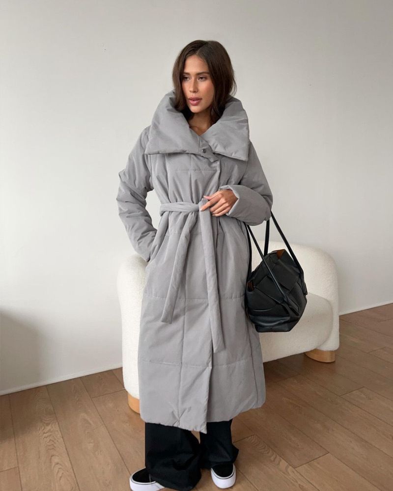 DENOR - Long puffer jacket with belt