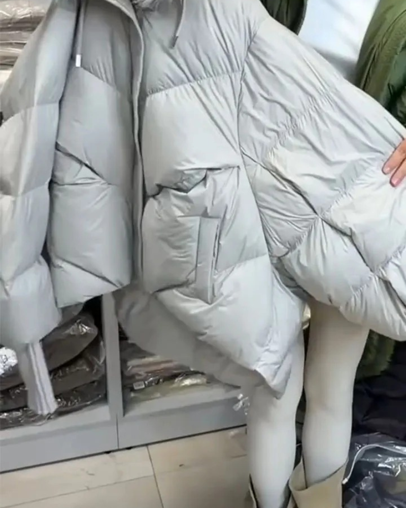 Perfect for winter walks, daily errands, or layering over casual looks, this jacket delivers reliable warmth with a bold, cozy silhouette.