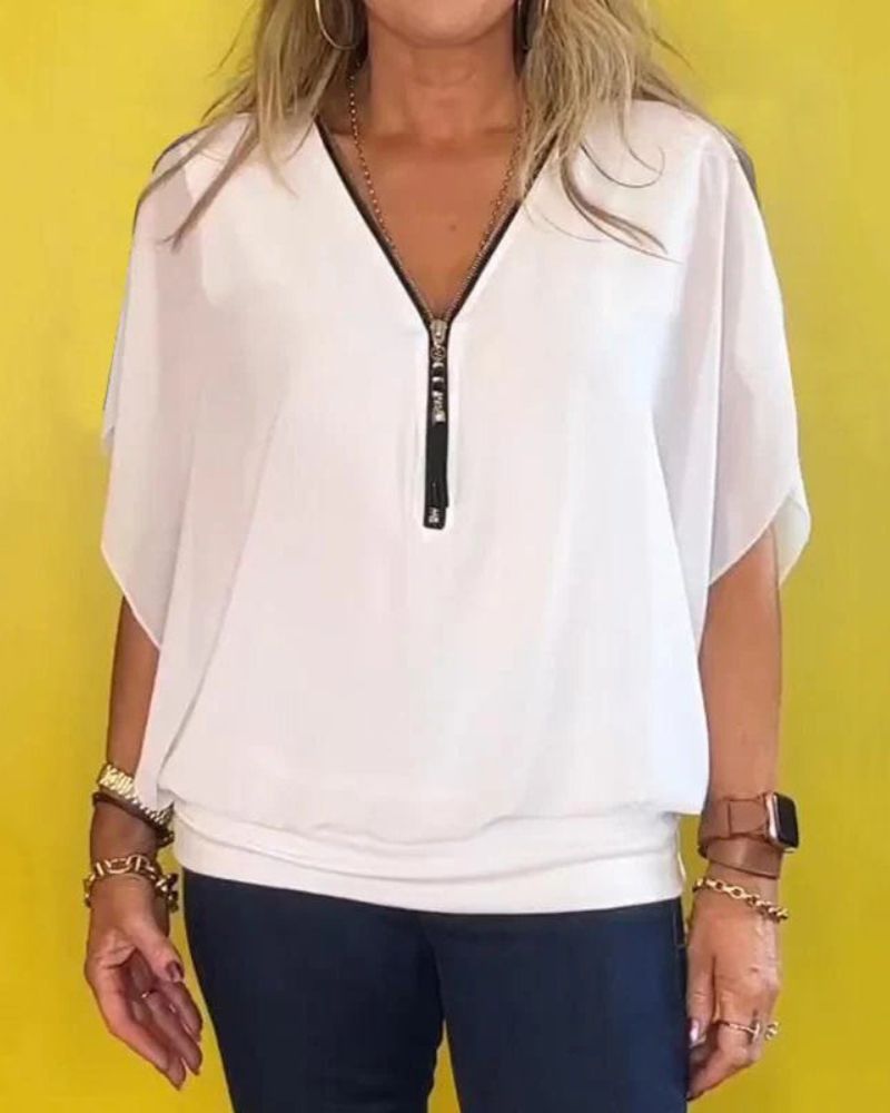 The zip-up V neckline adds a modern and versatile touch, perfect for both modest and relaxed looks.